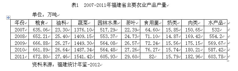 福建省倚山滨海,拥有优越的山海资源和丰富的农产品资源。2010年全省农林牧渔业产值2071.60亿元,增长3.5%,其中农业产值848.89亿元,增长2.7%;牧业产值375.67亿元,增长2.4%。全省农垦完成国内生产总值33.5亿元,增长12%。如表1所示,福建省各类农产品数目巨大,这些产品中大多会通过农产品流通渠道成为商品进入消费市场,形成了巨大的农产品物流需求。但是由于农产品生产者规模化程度不高,物流技术手段落后,大量价值损耗在中间流通环节,以致福建省农产品供应链整体效益不高。